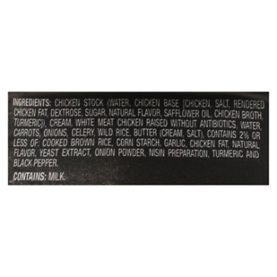 About This Diced chicken long grain and wild rice celery onion and carrots simmered in chicken stock with cream and select herbs. Pour soup into sauce pan. You can also cook this packaged soup on the stove top to 165 degrees F for a few minutes but do not.